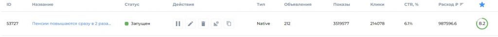 Эта новость была выбрана не случайно: тематика пенсий точно актуальна для нашей целевой аудитории и набирает высокие показатели CTR.
