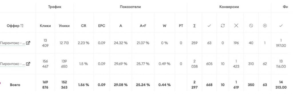 Благодаря тому, что процент выкупов был высоким, ставку подняли. Это произошло под конец первого периода отлива, когда команда уже успела переключиться на другие связки. Позднее ставка стала ещё выше, поэтому в августе наш баинг возобновил пролив оффера “Пирантокс”.