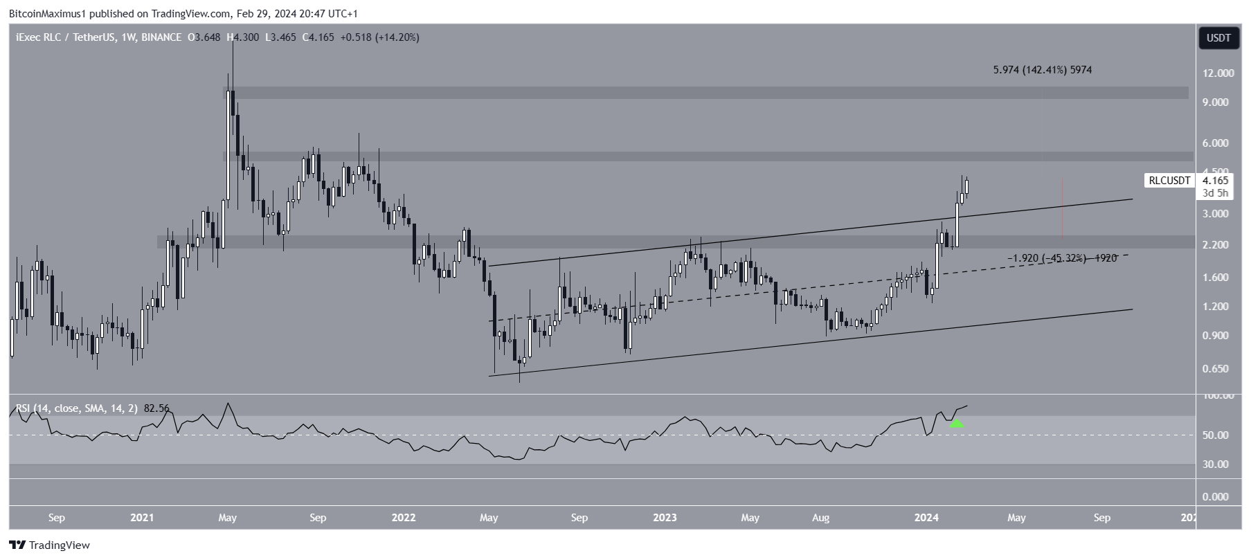 Недельный график RLC/USDT. Источник: TradingView