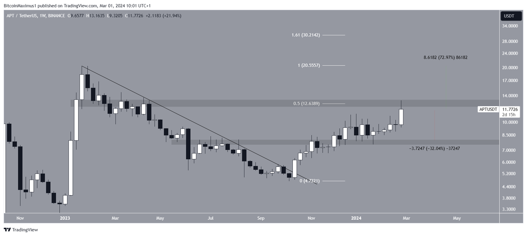 Недельный график APT/USDT. Источник: TradingView
