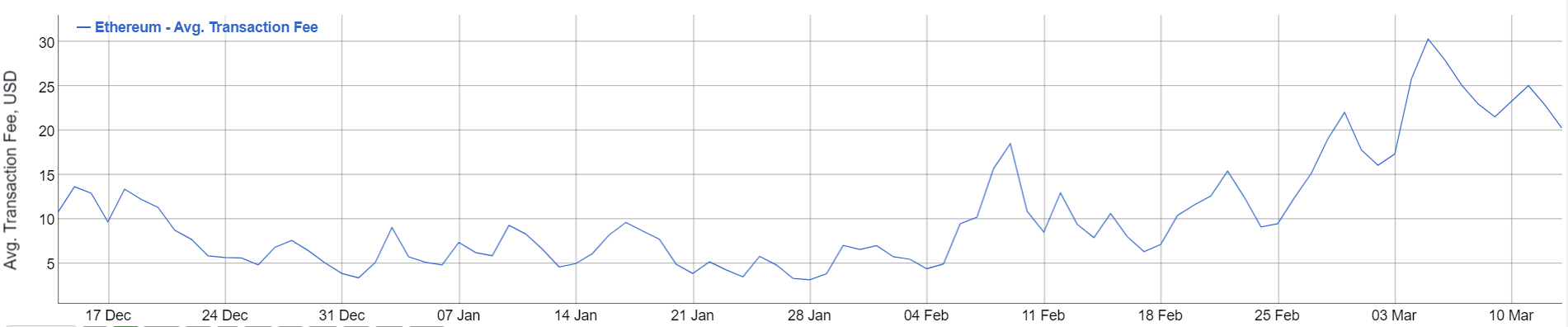 Комиссии в основной сети Ethereum, по состоянию на момент написания обзора, остаются на прежних уровнях.