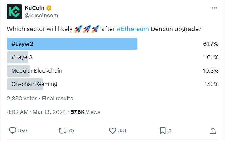 Опрос команды KuCoin показал, что участники криптосообщества верят в ралли решений второго уровня для Ethereum.