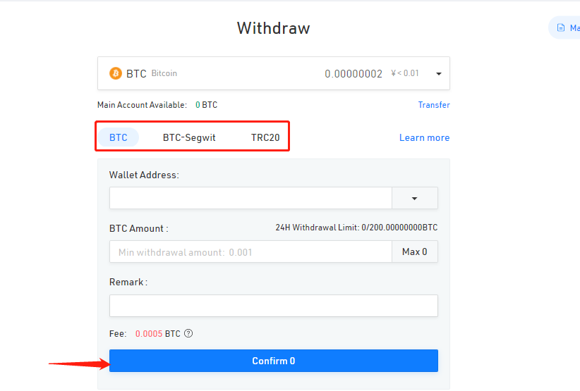 BTC : KuCoin поддерживает BTC-Segwit с адресов депозита (начинается с «bc») и формы BTC (начинается с «3»), а функция вывода поддерживает вывод в трех форматах.