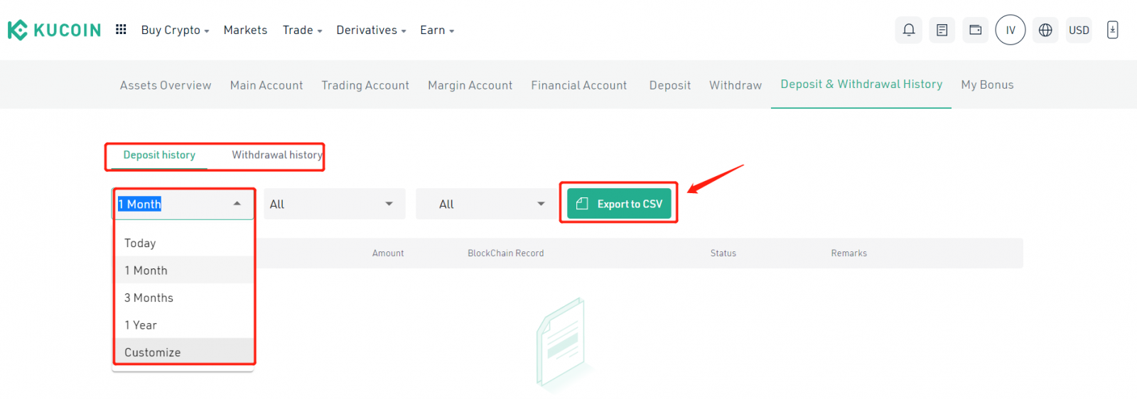 если вы хотите экспортировать историю в KuCoin, продолжительность не может превышать 100 дней , а ограничение на загрузку — 5 раз в день . Чтобы просмотреть историю депозитов/снятий в годовом исчислении, попробуйте экспортировать их 4 раза по отдельности. Приносим извинения за неудобства, которые доставили вам.