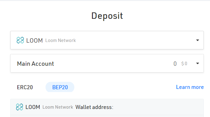 Обратите внимание, что в настоящее время мы поддерживаем депозит только для части токенов BEP20 (например, BEP20LOOM/BEP20CAKE/BEP20BUX и т.д.). Перед внесением депозита проверьте страницу депозита, чтобы подтвердить, поддерживаем ли мы токен BEP20, который вы хотите внести (как показано ниже, если мы поддерживаем токен BEP20, в интерфейсе депозита будет отображаться адрес депозита BEP20). Если мы не поддерживаем его, пожалуйста, не вносите токен на свой счет в Kucoin, иначе ваш депозит не будет зачислен.