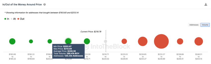 С фундаментальной точки зрения Bitcoin Cash, похоже, настроен на дальнейший откат. Данные In/Out of the Money подтверждают этот негативный прогноз. Однако медведи могут столкнуться с серьезным препятствием на уровне $203: 126 230 адресов, купивших 286 410 BCH по этой цене, постараются предотвратить более масштабную коррекцию.