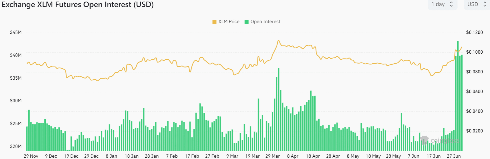 Сумма открытых контрактов в начале июля возросла до $43 млн, об этом свидетельствуют данные платформы CoinGlass. Последний раз открытый интерес к XLM-фьючерсам находился на таком уровне в октябре 2022 года.