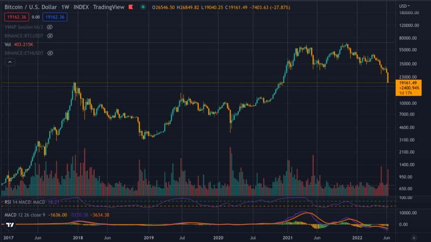Первое падение BTC ниже $20 000 в 2022 году. Источник: TradingView