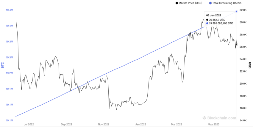 Текущее предложение BTC. Источник: Blockchain.com