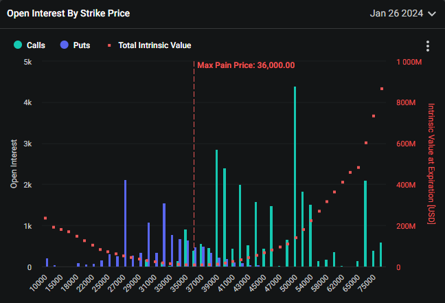 На рынке опционов открытый интерес к контрактам с ценой исполнения в $50 000 оказался самым большим.