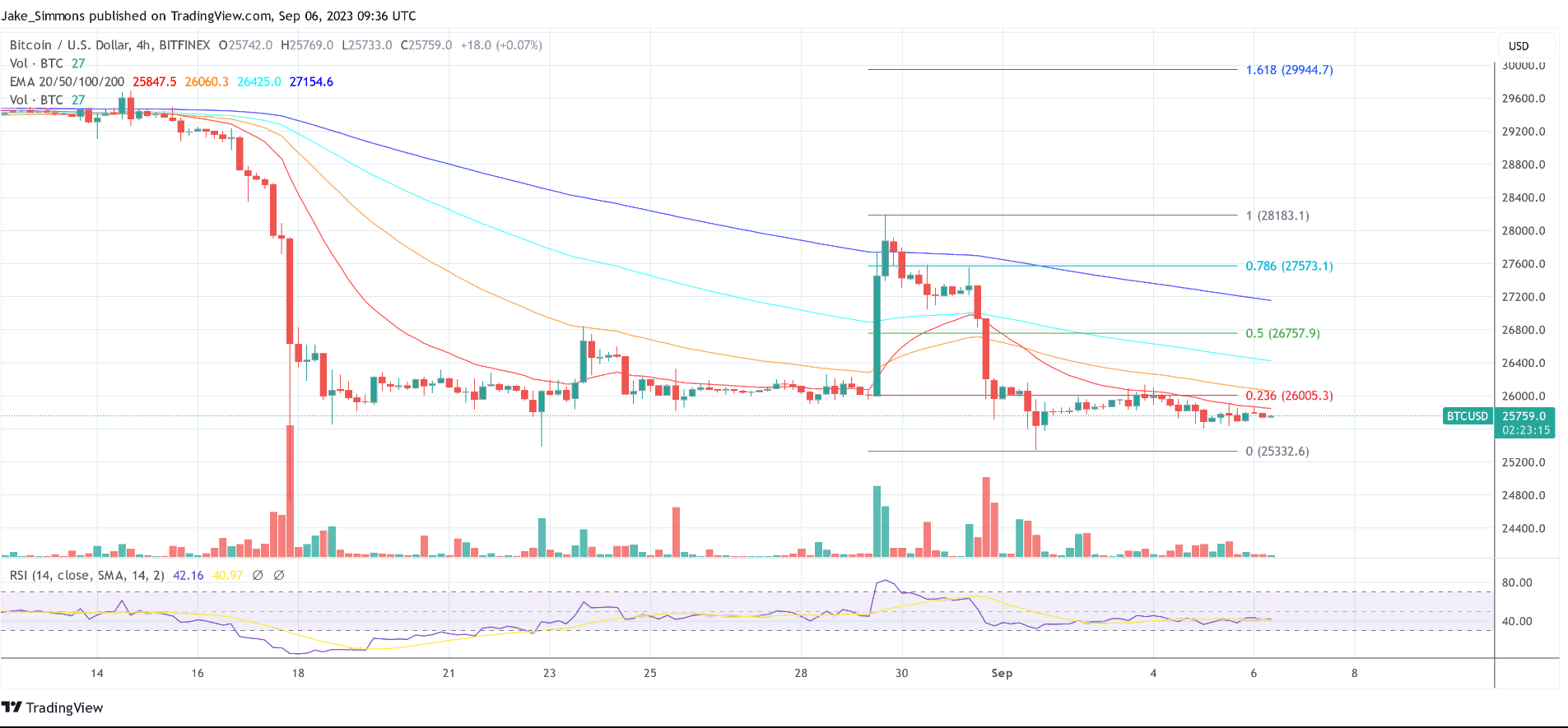 Биткоин (BTC) в ночь на четверг, 7 сентября, снизился до $25 652. За неделю его стоимость упала почти на 6%.