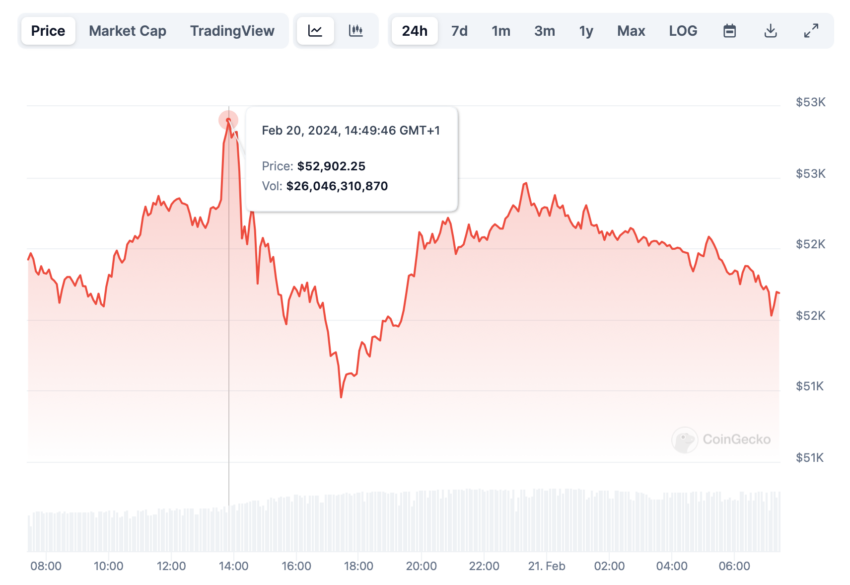 На момент написания главная криптовалюта торгуется у отметки $51 800. Согласно данным Coinglass, в последние несколько чаcов трейдеры открывали больше коротких позиций, чем длинных, что говорит об ожиданиях дальнейшей коррекции.