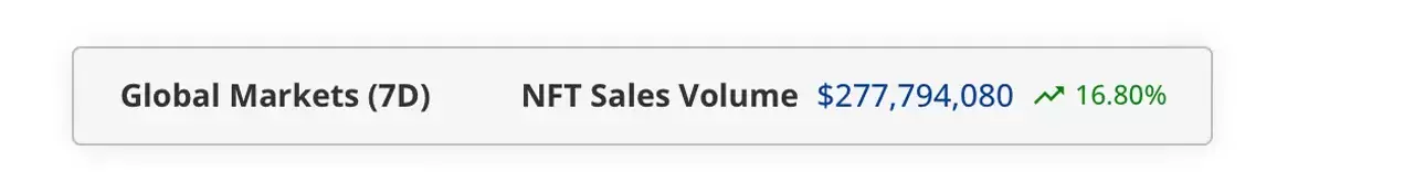 На этой неделе снова произошёл рост продаж NFT, составивший 3,74% относительно прошлой недели. Актуальные данные говорят о том, что транзакции NFT достигли $277,79 млн на 21 различной блокчейн-платформе, что означает рост на 16,8%.