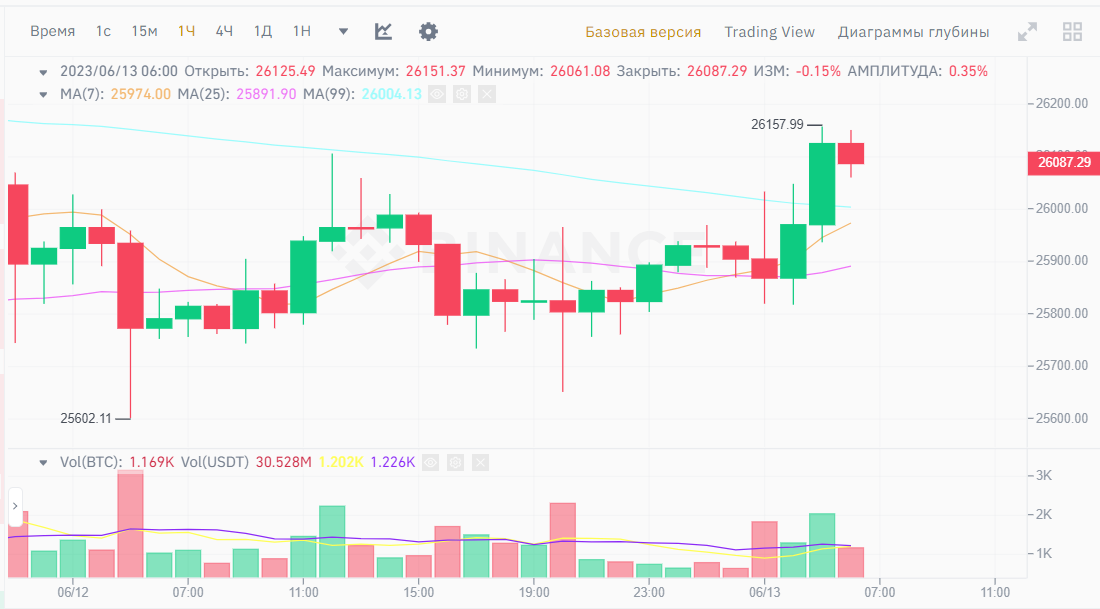 Курс Биткоина вырос на 0,21% до 26 152 долларов США за 24 часа, согласно данным CoinMarketCap. Крупнейшая в мире криптовалюта по рыночной капитализации потеряла 3,82% за последние семь дней после судебных исков SEC США против двух крупнейших криптобирж, Binance и Coinbase. Глава SEC считает, что крипторынок полон мошенических схем.