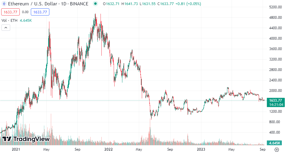 На момент написания ETH торгуется около $1630, по данным TradingView: