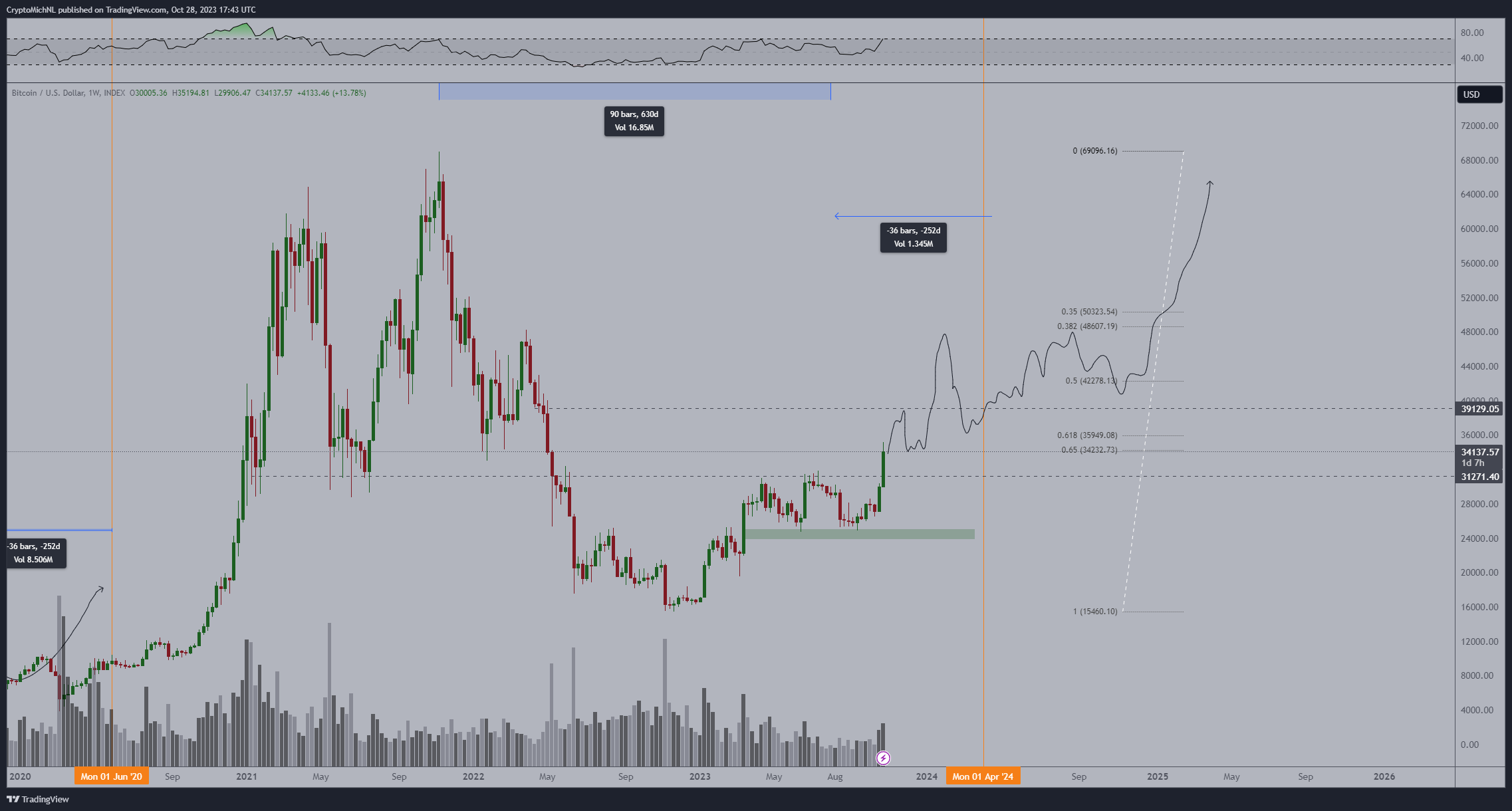 Аналитик CrypNuevo, в свою очередь, ждет коррекции биткоина к $31 тыс.