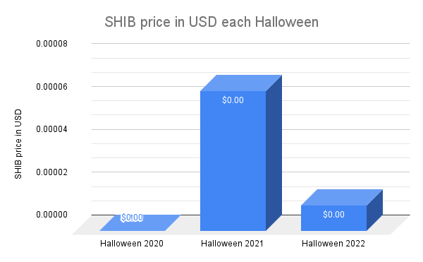 Динамика цены SHIB на Хэллоуин с 2020 года. Источник: Finbold