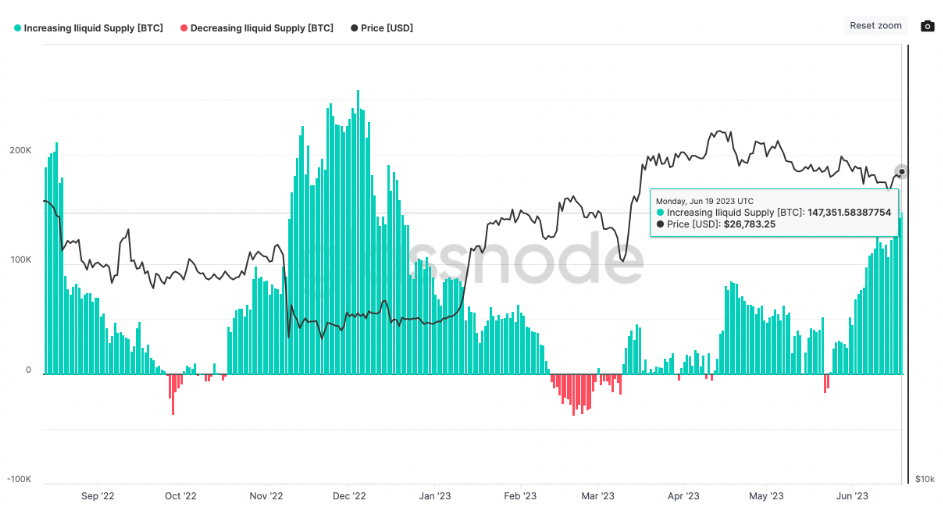 Общая сумма, удерживаемая этими неликвидными организациями, сейчас составляет рекордные 15 207 843 токена. За последние четыре недели сумма подскочила на 215 000, что свидетельствует о росте спроса на крупнейшую в мире криптовалюту.