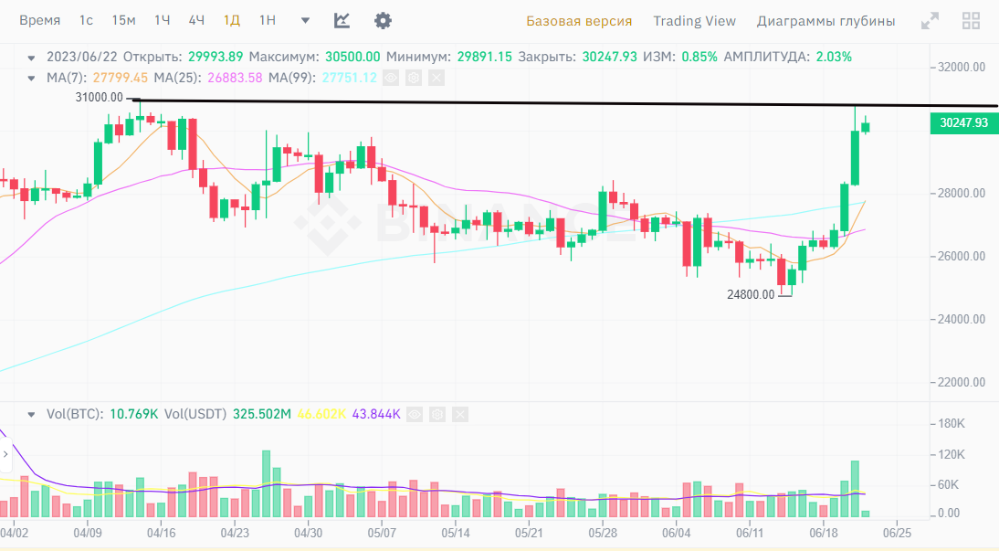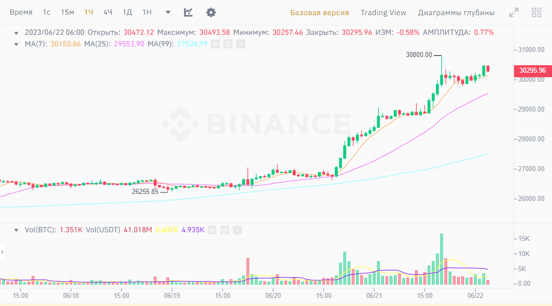 Вчера цена Биткоина поднялась выше 30 100 долларов. Новости и прогноз Биткоина умеренно позитивные на ближайшие дни.