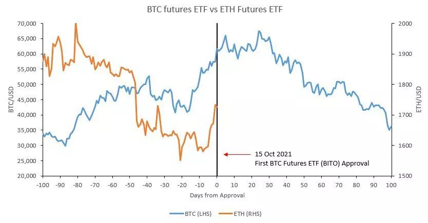 2. Ожидания негативной динамики фьючерсных ETF на Ethereum на основе поведения аналогичных инструментов на базе биткоина два года назад.