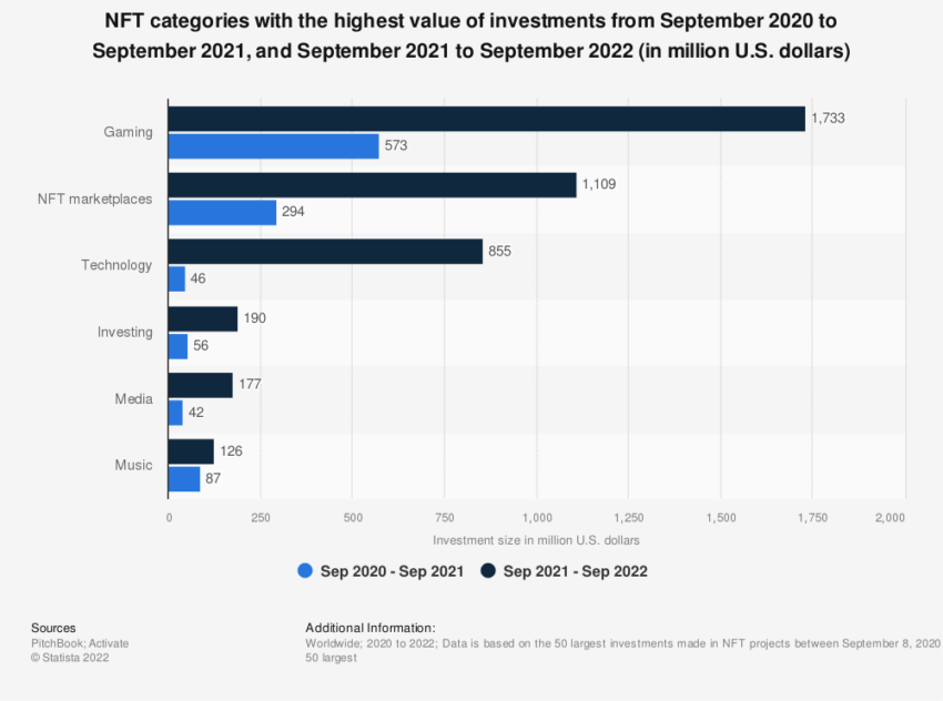 В какие категории NFT инвестировали больше всего. Источник: Statista