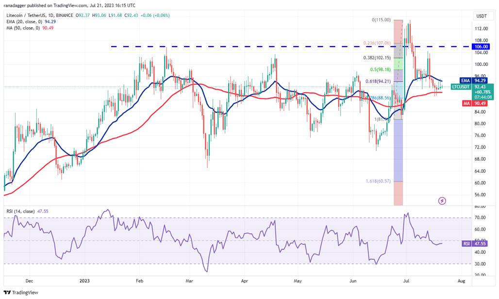 Если цена закроется ниже 50-дневной SMA (90 долларов), продажи могут усилиться, и пара LTC/USDT может упасть до 80 долларов. В качестве альтернативы, прорыв и закрытие выше 20-дневной EMA может открыть возможность для подъема до 106 долларов.