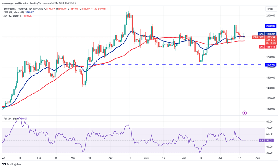 Эфириум последние несколько дней торгуется около 20-дневной EMA (1896 долларов). Это говорит о состоянии равновесия между быками и медведями.
